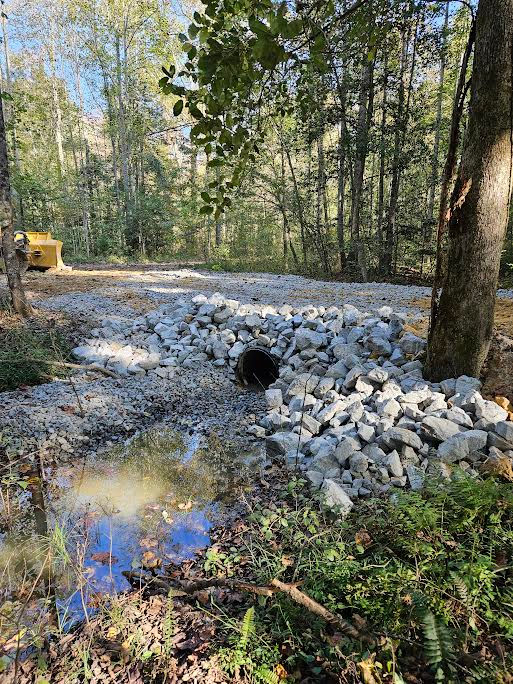At Cedar Ridge Farm, RCSS completed a range of enhancements to optimize the property for outdoor activities. We cleared approximately 2 miles of trail and road, forestry-mulched an additional 2 miles of access trails, and prepared a half-acre food plot for wildlife. To ensure easy access across the terrain, we installed a 24-inch pipe to cross a creek and seeded the hunter’s fall food plots for optimal growth.
